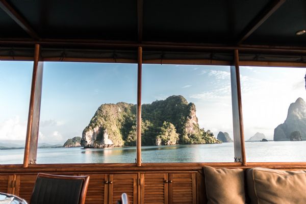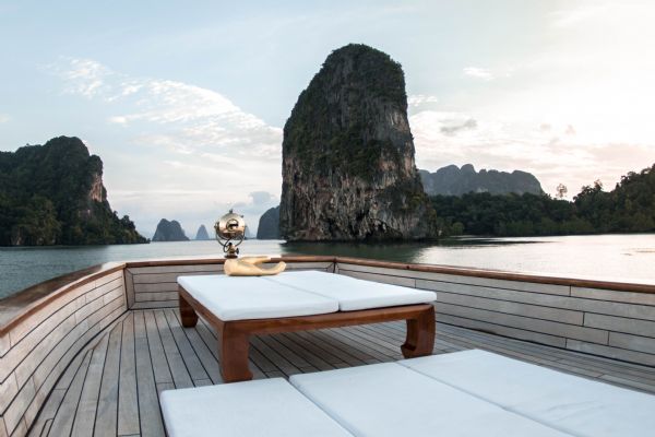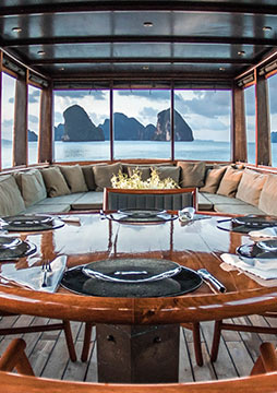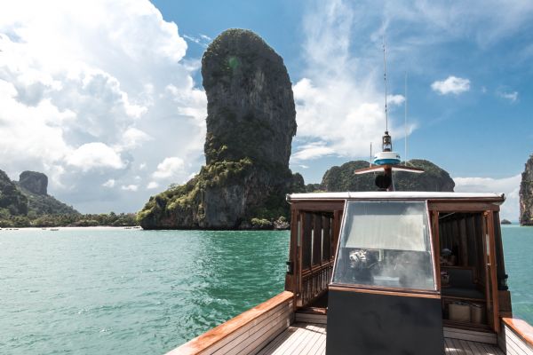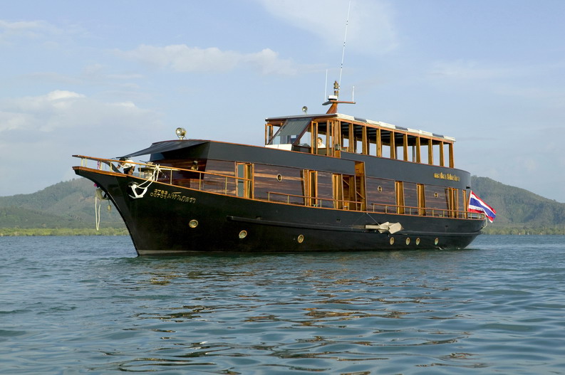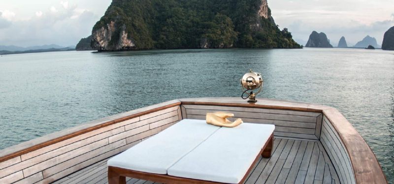 This unique 90ft Luxury traditional Thai-crafted wooden yacht holds 3 palatial double cabins below a spacious open plan teak-laden salon on the top deck. Its sturdy construction will take its guests far and wide in the Andaman.